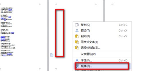 1、直接選中空白頁——右鍵——段落。