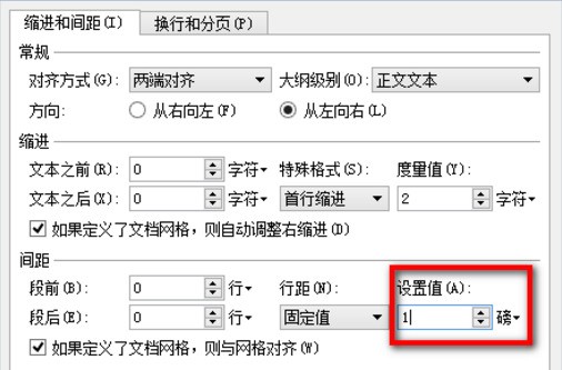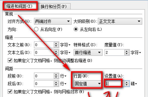 2、在段落窗口中縮進和間距——行距(設來自為固定值)。