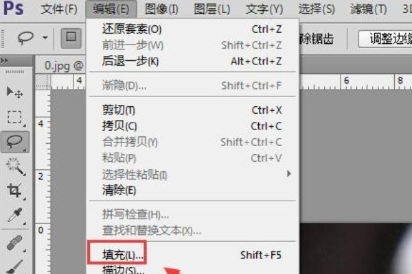 6、點擊編輯菜單在其子級菜單里找到填充選項。