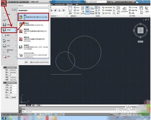 二、步驟:1.打開原高版本cad2013保存的圖形。點擊軟件左上角的部分,如圖,點擊另存為,選擇圖形。