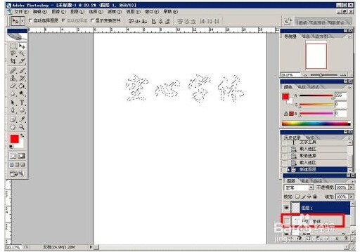4、下面按住ctrl鍵點擊該文字圖層的圖標,即可將文字邊緣選中,然后新建一個圖層,并且將文字圖層隱藏,來自即可得到下圖所示效果;