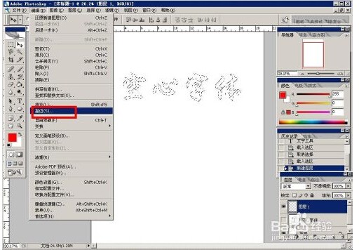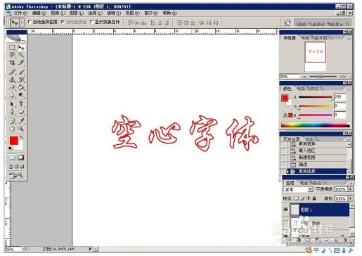 7、一切就緒之后,按ct以書項rl加D鍵來取消選區,即可得到下圖樣子的空心字了;