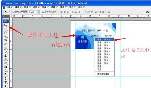 5、直到布滿所有標尺定位的選區為止,然后保存,為了以后制作第二面方便,要保存為PSD格式的一份;為了打印方便,再保存一份jpg格式的文件即可。