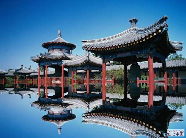 圖片中并沒有水面,不過同樣可以制作倒影。制作之前只需要先設定好水面部分。然后把需要做成倒影的圖片復制,翻轉后模糊處理;然后用濾鏡做出水紋紋理,再疊加到倒影上面,就可以做出初步的水紋。后期修整一下邊緣,調整好顏色即可。