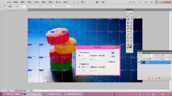 首先用切片工具選中整個圖片,然后右鍵“劃分切片”,輸入你要的數字,確定,然后再選擇保存為web,格式選擇egif
