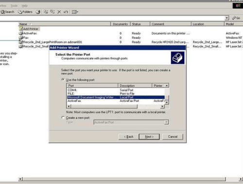 5. 然后,在新窗口中,選擇“Microsoft Office Document Image Writer”打印機(jī),并點(diǎn)擊“下一步”按鈕。