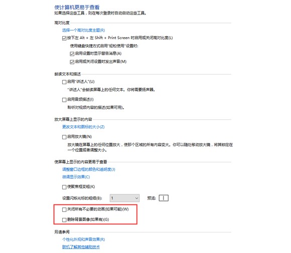 然后再看關閉所有不必要的動畫和刪除背景圖像有沒有被勾選。咋看?這么來:先找到桌面圖標里的此電腦,右鍵點屬性,彈出界面里點控制面板,再點輕松使用,接著點輕松使用設置中心,然后點使計算機更易于查看,最后把滾動條拖到最底下,看看這倆有沒有被勾選。要是勾選了,一定要取消,然后確定,再重啟upupoo視頻桌面就好啦。