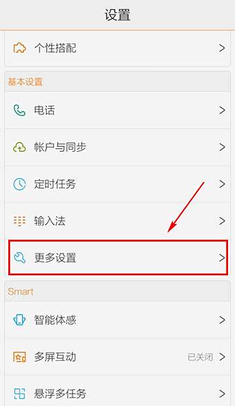 進入”設置“后,向下滑動,選擇“更多設置”。