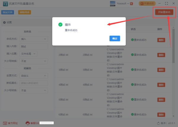 步慎型驟3,然后點擊右上角的“開始重命名”按鈕,這樣軟件就啟閉孝伍動文件批量重命名操作了,我們等待一會轎或,當軟件提示成功的時候,說明成功了。
