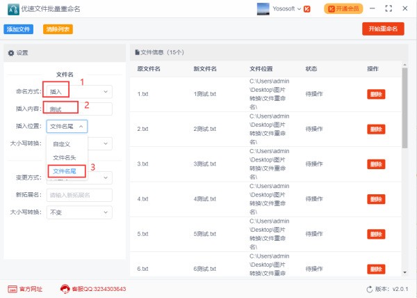 步驟4,從案例中可以看出,文件嗎紹械藝專命揮名稱后面全部統一加上了“測試”兩個文字。