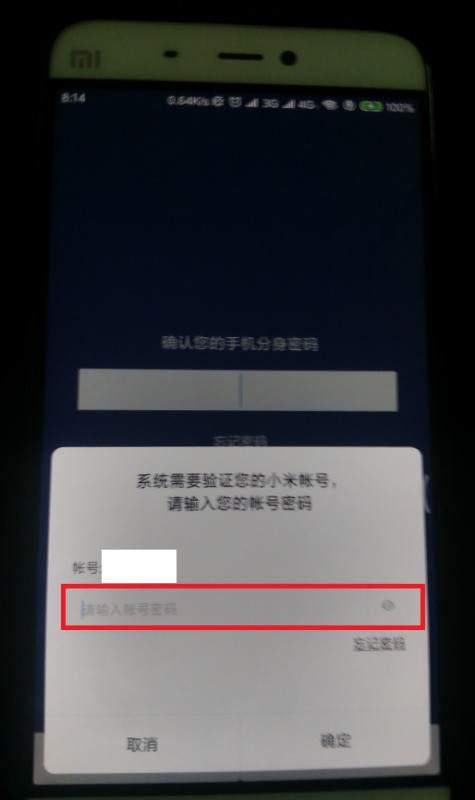 3、接下來,在密碼輸入框中,輸入小米賬號登錄密碼,然后點擊“確定”按鈕。