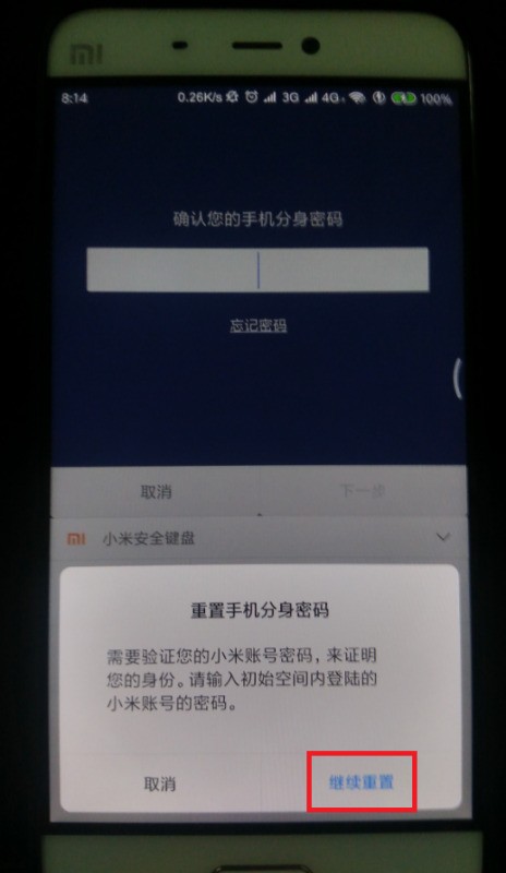 4、當驗證過小米賬號登錄密碼之后,即可自動進入密碼重置頁面,在該頁面中即可設置新的手機分身密碼。