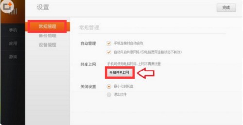 4. 開完之后,小米助手會自動裝驅動,別急著拔線!等它搞定,手機名字下面顯示共享網絡已開啟就OK了。