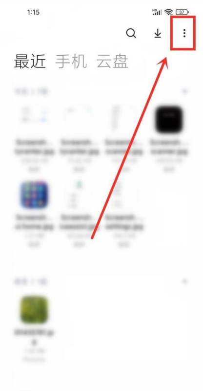 第二步:打開菜單選項在文件管理頁面右上角,點擊由三個點組成的菜單圖標,彈出功能列表。