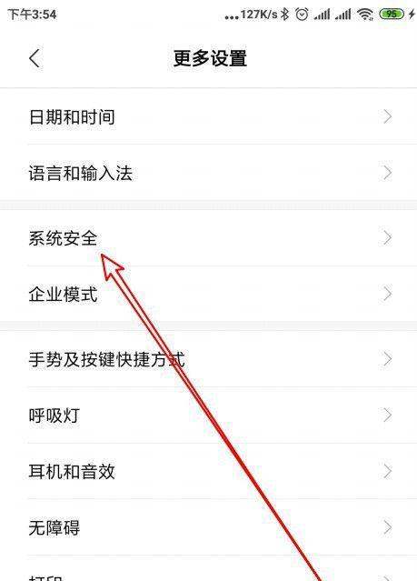 3. 如圖,進入更多設置頁面后,選擇“系統安全”選項,點擊。