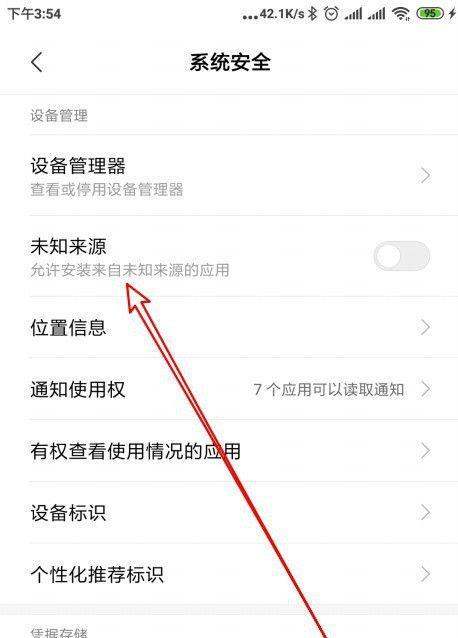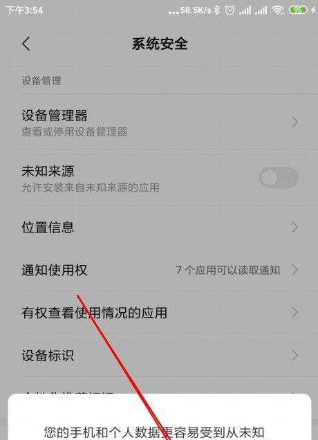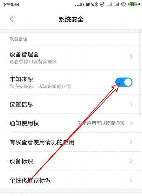 4. 進入系統安全頁面后,如圖,就可以看到“未知來源”的選項了,點擊右側的開關。