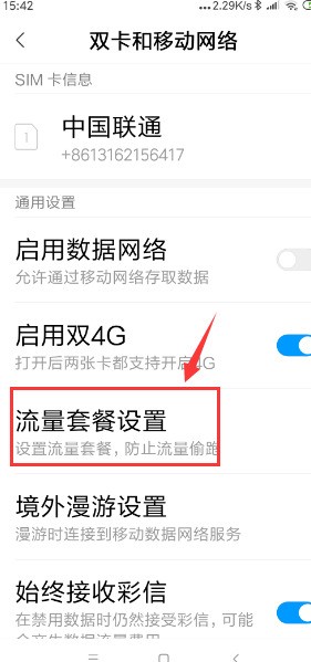 2、然后找到“流量套餐設置”的選項,并且點擊它。