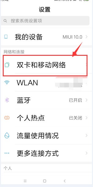 3、接著找到“雙卡和移動網絡”的選項,并且點擊它。