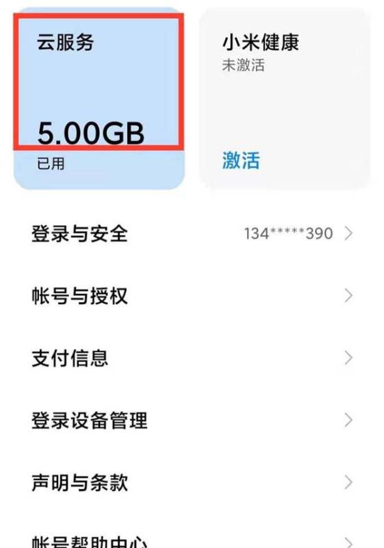 步驟三:打開云服務在賬號管理頁面中找到并點擊云服務選項,進入小米云服務界面。