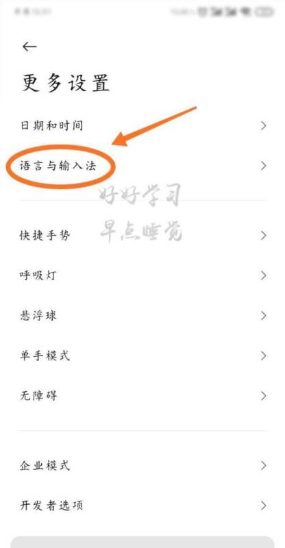進(jìn)入輸入設(shè)置界面在更多設(shè)置界面中找到“語言和輸入法選項(xiàng)”,點(diǎn)擊進(jìn)入輸入設(shè)置界面。