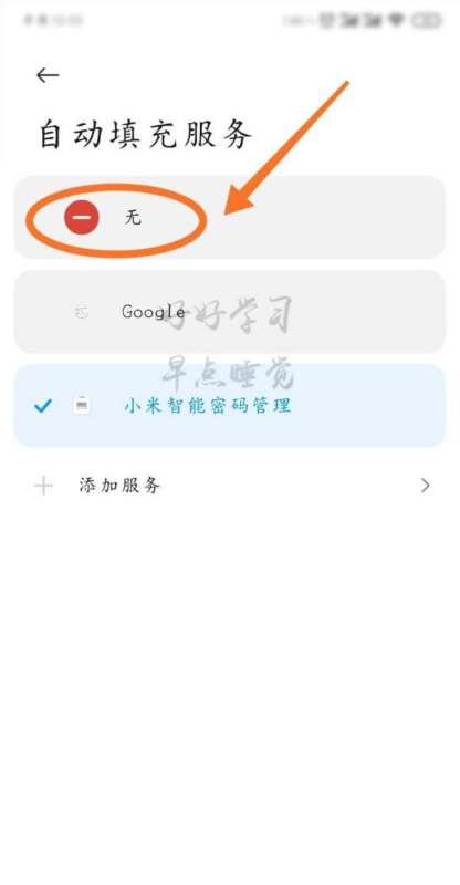 關(guān)閉自動(dòng)填充服務(wù)在彈出界面中,可以看到所有已授予權(quán)限的自動(dòng)填充服務(wù)。若需完全關(guān)閉,直接點(diǎn)擊“無”選項(xiàng)即可完成操作。