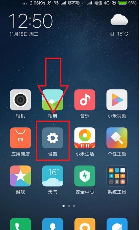 6.然后小伙伴們?cè)俅_認(rèn)你的手機(jī)是MIUI8及以上系統(tǒng)后,就可以和上面一樣點(diǎn)擊主頁面上的“設(shè)置”按鍵,進(jìn)入“設(shè)置界面”。