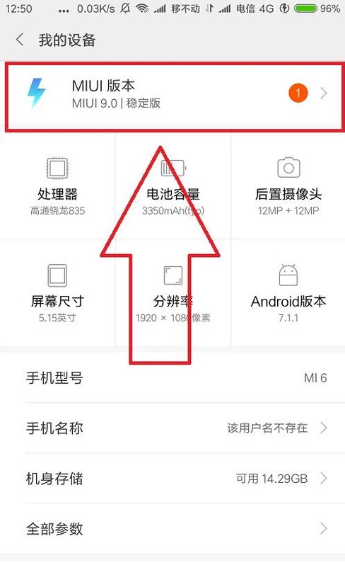 4.在這個(gè)頁面中,我們?cè)冱c(diǎn)擊一次最上方的“MIUI版本”選擇框,進(jìn)入后你就可以看見你的小米手機(jī)現(xiàn)在的系統(tǒng)版本信息了。