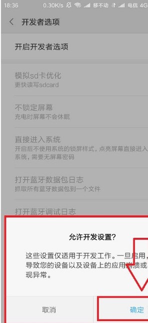 11.當(dāng)看到“開啟開發(fā)者選項(xiàng)”右邊的藍(lán)色原點(diǎn)亮起后,就說明我們成功打開了我們小米手機(jī)的開發(fā)者選項(xiàng)。