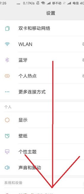 7.進(jìn)入設(shè)置界面后,將頁面往下方劃,找到“系統(tǒng)和設(shè)備”一欄,然后在這欄的最下方有一個(gè)“更多即供雞她紅蘭格發(fā)迅科設(shè)置”,點(diǎn)擊并進(jìn)入更多設(shè)置。