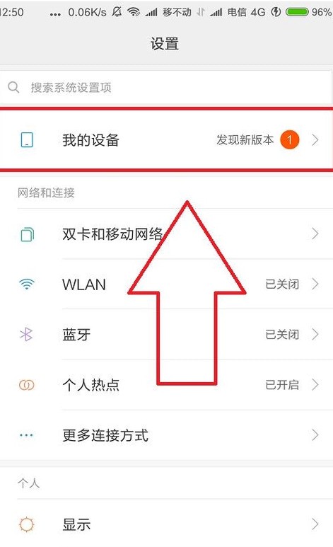 3.進(jìn)入這個(gè)設(shè)置界面后我們會(huì)發(fā)現(xiàn),在最上面一欄有一個(gè)“我的設(shè)備”選擇欄,點(diǎn)擊進(jìn)入其中,然后這里就會(huì)顯示你的手機(jī)的各種應(yīng)用數(shù)據(jù)和一系列軟件以及硬件的配置。
