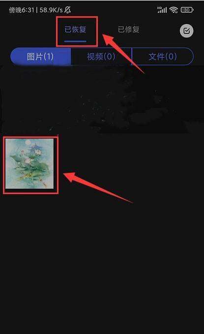 查看已恢復的圖片完成勾選后,點擊“已恢復”選項卡,即可查看成功找回的照片,并可將其保存至相冊或其他指定位置。