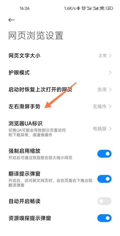 在小米瀏覽器中關閉左右滑屏手勢,可通過網頁瀏覽設置實現。具體操作步驟如下: