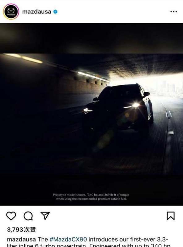 動力配置:新車將搭載3.3升直列6缸渦輪增壓發動機,最大功率為340馬力,峰值扭矩500牛·米,將成為量產馬自達車型中的最強動力。