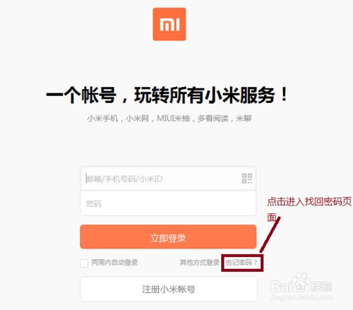 第一種忘記小米賬戶登錄密碼的情況是曾經綁定過手機或郵箱,這一情況也是大多數人遇到的情況,因為目前小米賬戶只允許使用手機和郵箱注冊,因此如果只要您注冊小米賬戶,肯定綁定過手機或郵箱。此時如果您忘記密碼,可以采取以下步驟找回密碼。