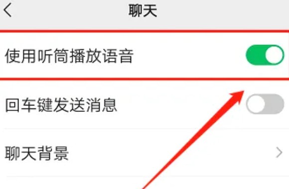3、需要將聊天頁(yè)面中使用聽(tīng)筒播放語(yǔ)音的開(kāi)關(guān)打開(kāi)即可關(guān)閉微信語(yǔ)音黑屏感應(yīng)器,如下圖所示。