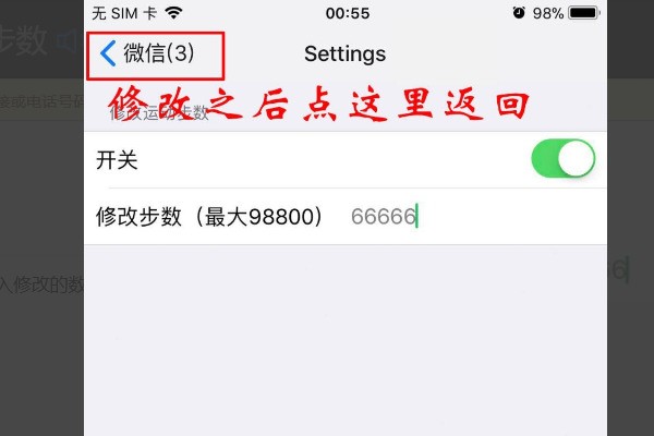 3、點(diǎn)下面的修改步數(shù),輸入修改的數(shù)字。并點(diǎn)返回。