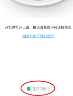 4、選擇“米家掃地機(jī)器人”,勾選“藍(lán)燈閃爍中”,點(diǎn)擊下一步。如圖所示: