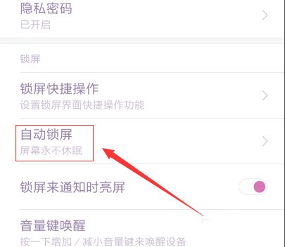 3、點(diǎn)擊自動(dòng)鎖屏,就是在無(wú)任何操作的時(shí)候,手機(jī)自己會(huì)鎖屏,來(lái)省電延長(zhǎng)工作的時(shí)間。