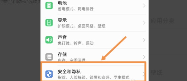 1、首先打開手機“設置”,下滑找到“安全和隱私”選項,然后點擊。