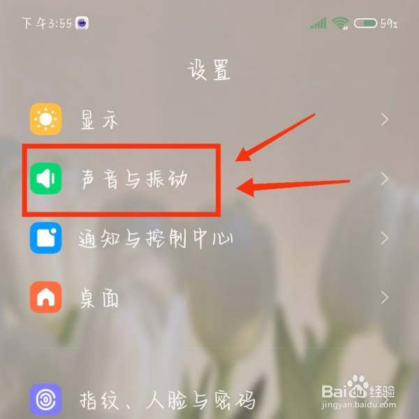 進入聲音與振動選項在設置列表中滑動查找聲音與振動選項,點擊進入聲音管理頁面。