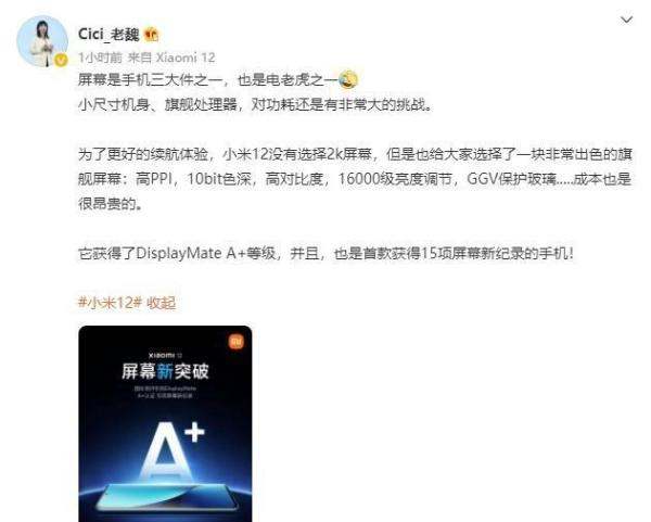小米12標(biāo)準(zhǔn)版未配備2K分辨率屏幕,產(chǎn)品經(jīng)理“老魏”回應(yīng)稱(chēng)此舉是為了優(yōu)化續(xù)航表現(xiàn),但強(qiáng)調(diào)屏幕具備10 bit色深、高對(duì)比度等特性,且成本昂貴。以下為具體分析: