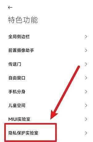 進(jìn)入隱私保護(hù)實(shí)驗(yàn)室:在特色功能設(shè)置頁(yè)面中,瀏覽選項(xiàng)列表,找到并點(diǎn)擊隱私保護(hù)實(shí)驗(yàn)室。該功能模塊專(zhuān)門(mén)用于管理隱私相關(guān)的高級(jí)設(shè)置。