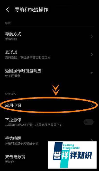 進入應用小窗設置在【導航和快捷操作】主頁面中,選擇【應用小窗】選項,進入小窗功能的具體配置界面。