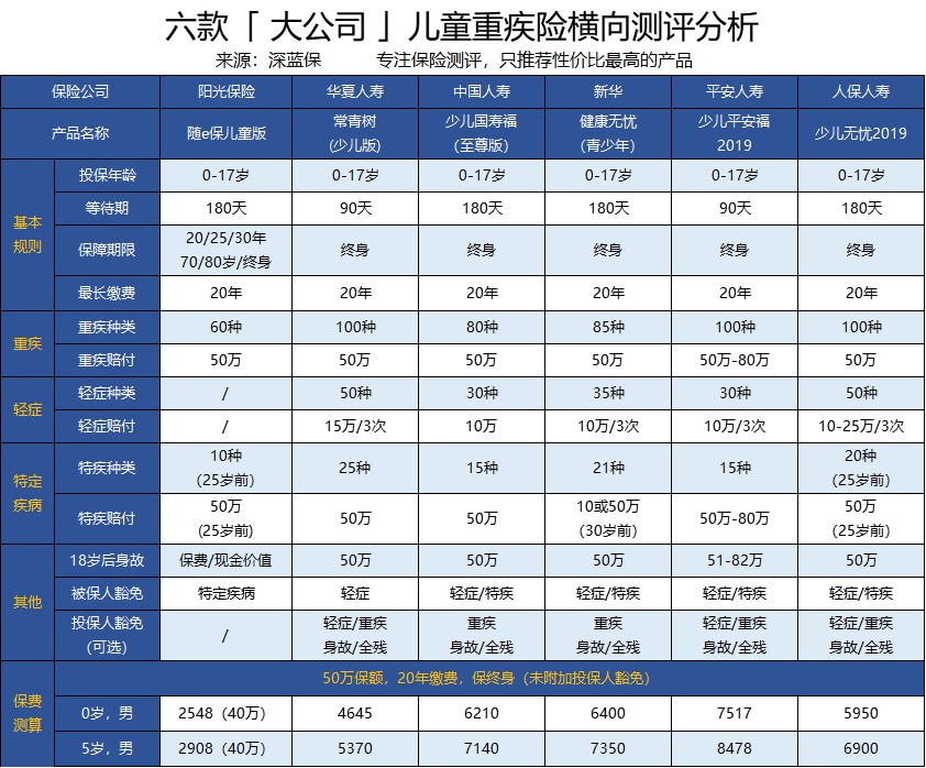 那么與其他大公司兒童重疾險對比,表現(xiàn)如何呢?(具體可見下表)