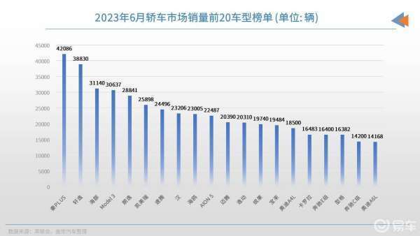 秦PLUS繼續領跑著國內轎車市場,是6月唯一一款月銷量破4萬輛的車型。本來就已經建立起了不錯的群眾基礎,再加上冠軍版車型的低價攻勢(另外隨著新工廠的陸續投產,產能也不再是問題),秦PLUS車系迅速就開啟了更加猛烈的市場“第二春”,把月銷量穩定在了4萬輛以上的歷史高位。