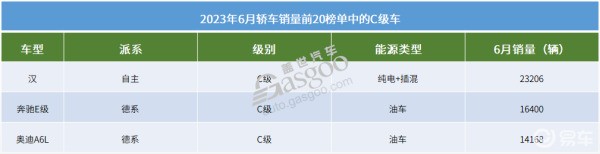 6月登榜轎車銷量前20的C級車依舊是3款,而且車型也沒有變,還是漢、奔馳E級和奧迪A6L。對奔馳和奧迪而言,持續擴大的終端優惠加上在高端市場上躬耕多年建立起來的品牌效應,都是其能夠繼續暢銷的關鍵。