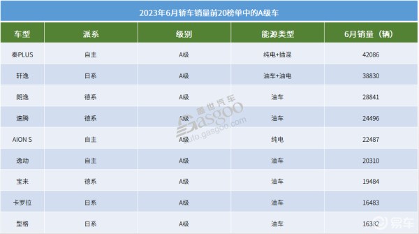 國內A級家轎市場的整體格局相對穩定,熱銷的產品基本上都是大家的熟面孔,畢竟這個細分市場的體量最大,能夠熱銷的產品,都是經歷過終端用戶千挑萬選的車型,想要意外“爆冷”的難度,不是一般的大。6月進入轎車銷量前20榜單的A級車共有9款,而且分散的很平均,自主和德系、日系各占了3個席位。