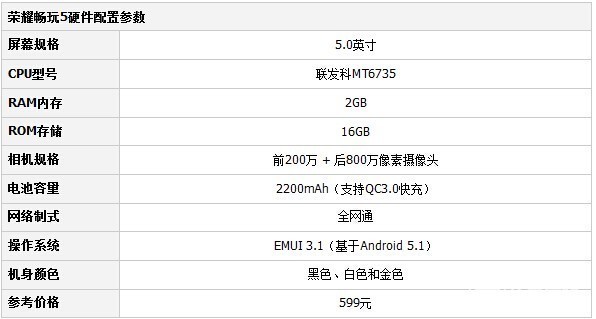 華為榮耀暢玩5詳細(xì)參數(shù),詳情如下所示,參數(shù)黨必看: