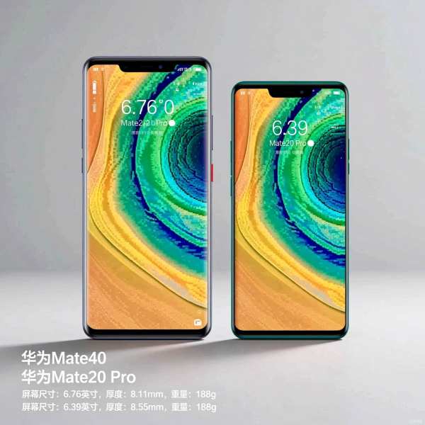 華為Mate 20 Pro和華為Mate 40的屏幕尺寸對比如下: