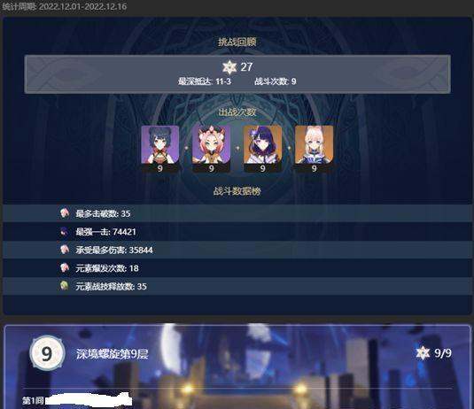 結(jié)束標(biāo)志:深淵9/10層滿星,獲得300+原石。